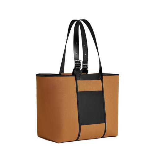 【新品包包】HERMES/爱马仕24新款 男士棕黑混色帆布配牛皮按扣手提包H082624CKAF