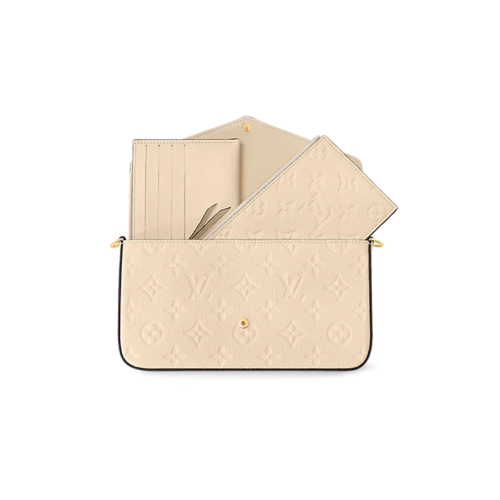 【新品包包】Louis Vuitton/路易威登 23新款 Félicie女士米色压花粒面牛皮链条单肩包/手拿包 M82363