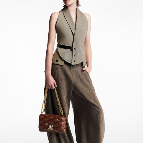 【包税】Louis Vuitton/路易威登 23新款 女士中号棕褐色菱形绗缝羊皮革扭锁翻盖单肩包 M23601