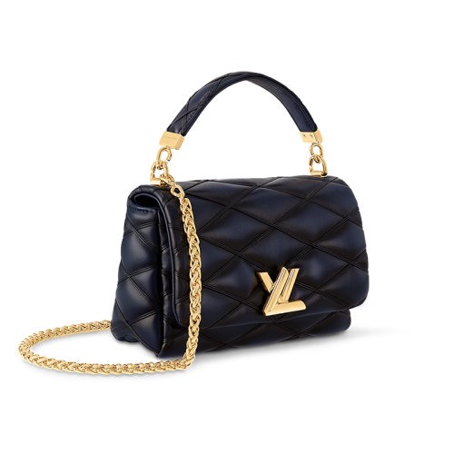 【包税】Louis Vuitton/路易威登 23新款 女士中号海军蓝色菱形绗缝羊皮革扭锁翻盖单肩包 M23682